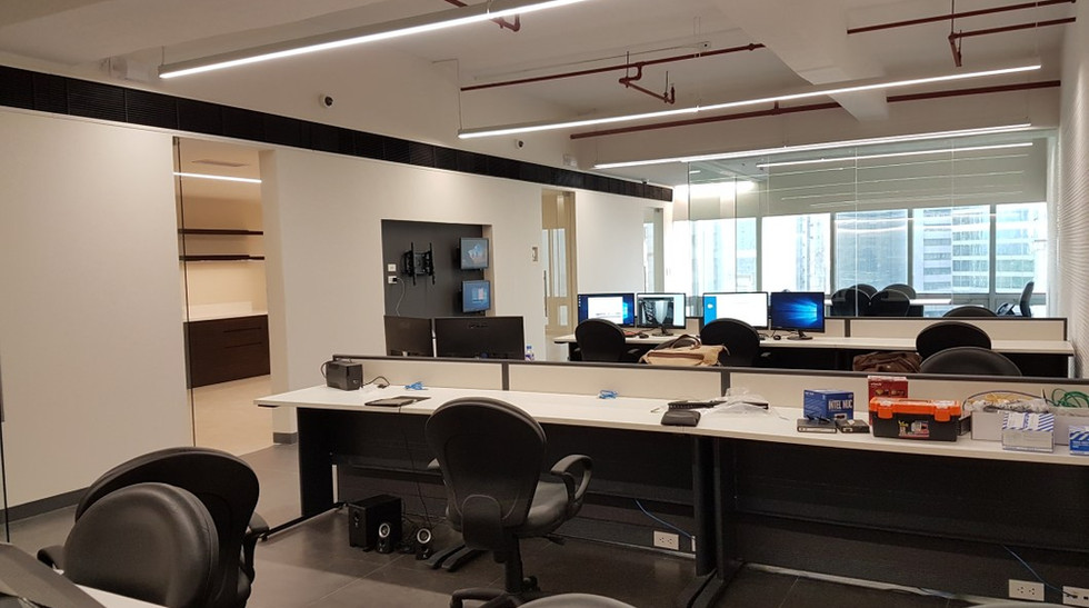 The space is comprised of a reception area, pantry, training room, conference rooms, and open workstations. The design shows streamlining of the Company's process and operations that aims to reflect organization and transparency. The ceiling displays the careful planning and clean execution of its engineering line and pipes. Linear lighting accentuates the smooth finish of the white walls. Overall, these small details prove that less is more in a contemporary design